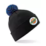 Double layer knit. Dual style - cuffed or slouch. Ribbed cuff. Two tone pom pom.