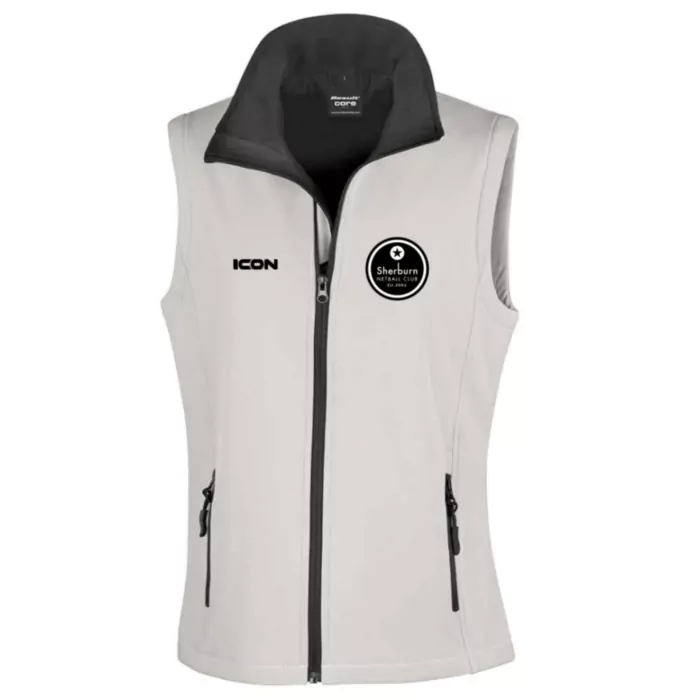 sherburn netball club white soft shell gilet - womens